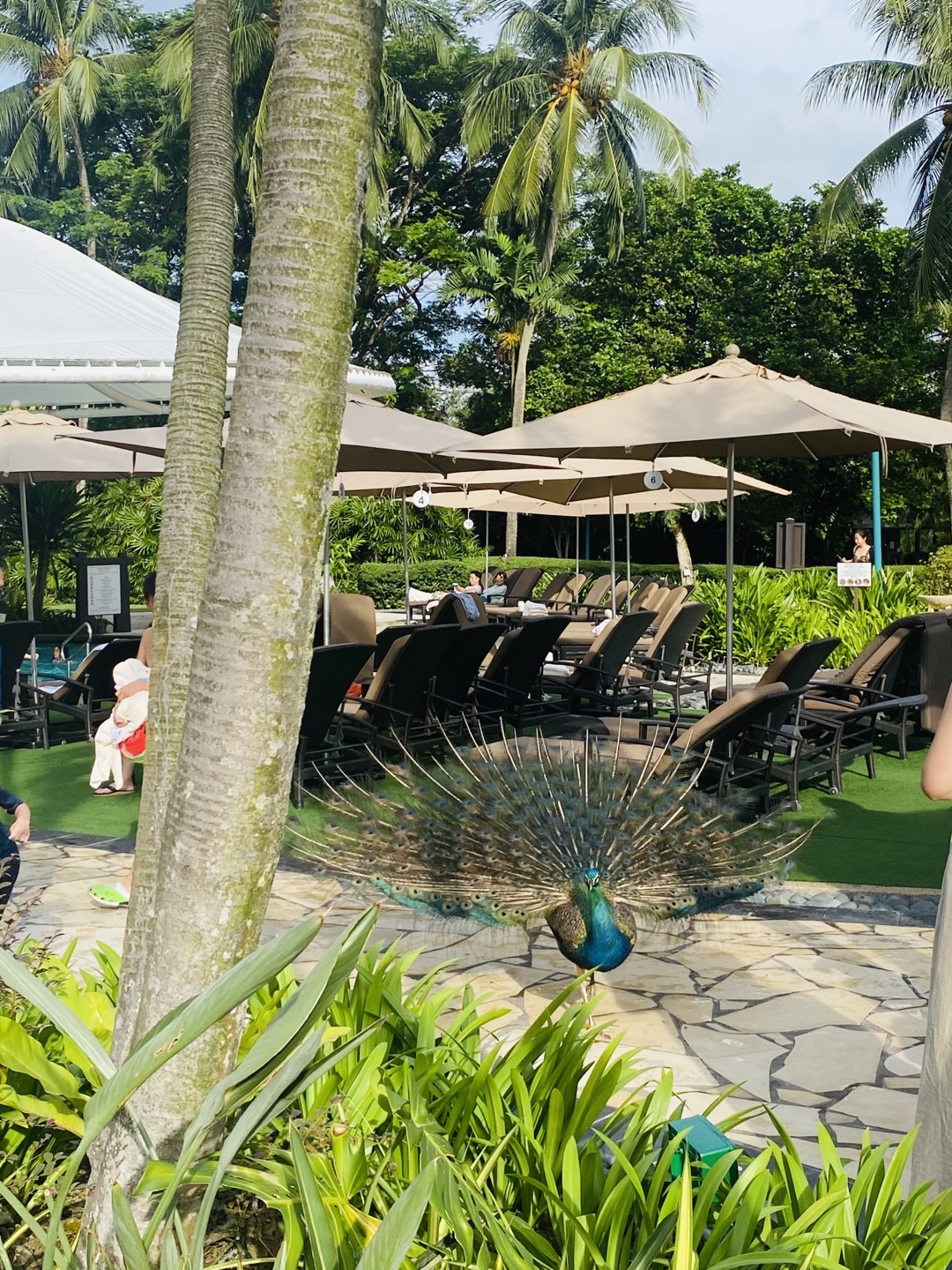 샹그릴라 센토사의 심볼, 공작새. 날개 펼치면 사람들 난리난다 ㅋ 🚲 비치 액티비티